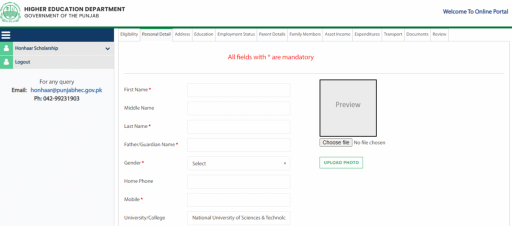 π Upload the documents β Upload scanned copies of CNIC, educational certificates, admission proof, and income certificate.
